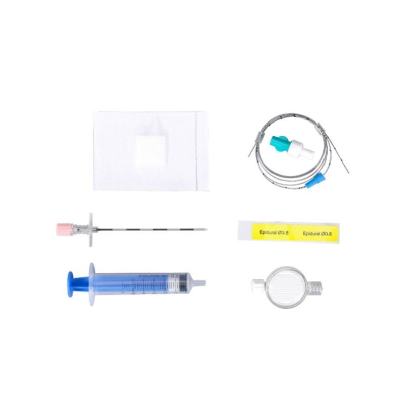 Kit Anestesia Epidural terdiri daripada jarum epidural, kateter epidural (jenis umum atau jenis bertetulang), jarum pengenalan, panduan pengenalan, penyambung kateter, penapis cecair dan picagari rintangan rendah. Ia digunakan untuk tusukan epidural, dan suntikan ubat cecair ke dalam ruang epidural semasa anestesia epidural.