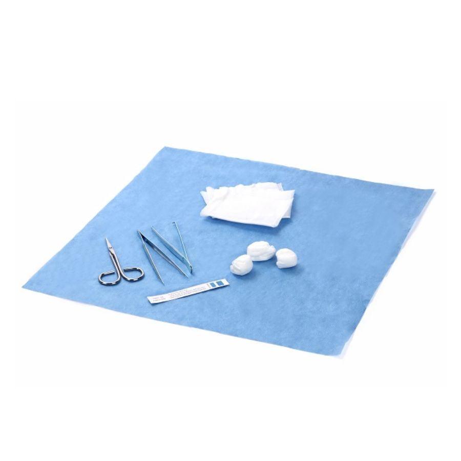 Bola spunlace, spunlace 35g/m², 3 pcs Forsep pembalut pakai buang, logam, hujung runcing, 12cm, 1 pc Forsep tisu, logam, 12cm, 1 pc Pad spunlace, 14.5 x 19.35sm, saiz dilipat 7.25 x 9.75sm, 4 lapis, 3 keping Gunting penyingkiran jahitan, logam, 14cm, 1 pc Dulang, 17 x 11cm, 1 pc Balut, 40 x 40cm, 35g/m² kain bukan tenunan SMS, 1 pc Kad penunjuk pensterilan, 1 pc |